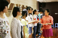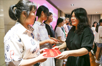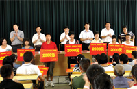 李俐萱女士向品學(xué)兼優(yōu)的學(xué)生頒發(fā)興業(yè)助學(xué)金。