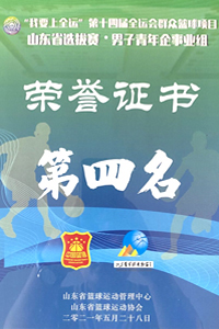 2021年5月,興業(yè)集團(tuán)籃球隊(duì)榮獲“第十四屆全運(yùn)會(huì)群眾籃項(xiàng)目山東省選拔賽男子青年企事業(yè)組”第四名