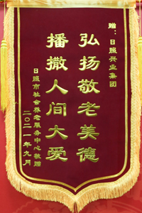 2021年9月,日照市社會(huì)養(yǎng)老服務(wù)中心贈(zèng)予錦旗興業(yè)集團(tuán)”播撒人間大愛(ài),弘揚(yáng)敬老美德“